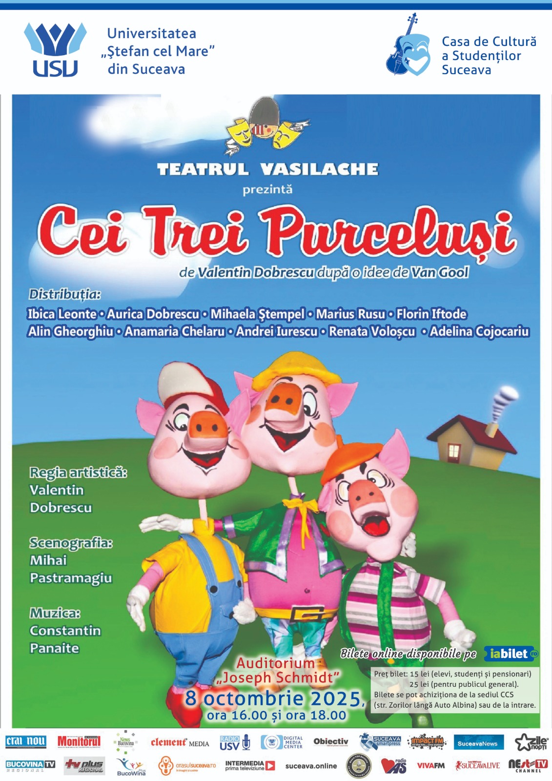 „Cei Trei Purceluși”, pe scena Casei de Cultură a Studenților din Suceava