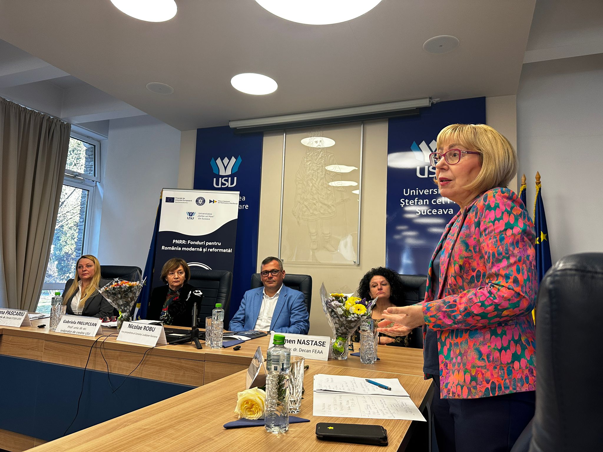 La rândul său, prof. univ. dr. Carmen Năstase a enumerat câteva dintre colaborările FEAA cu CJ Suceava și cu mediul de afaceri (şcoli de vară, internaționalizare, proiectul unui forum economic internaţional). La fel de important este parteneraitul strategic al FDSA cu C.J. Suceava, menţionat de conf. univ. dr. Liana-Teodora Pascariu. Mai mulți colegi din universitate sunt consilieri judeţeni şi se implică în activitatea administrativă, oferind modele de bune practici, iar studenţii desfășoară activități practice cu sprijinul conducerii judeţului.